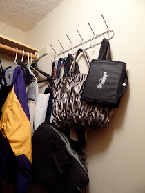 We were thrilled that the new house came with a pretty big closet that we named the Mud Room even though it's really just a big closet. I've always wanted to have a Mud Room, and aint' no one gonna hold me down. (Uh oh, I got to keep on movin'.)